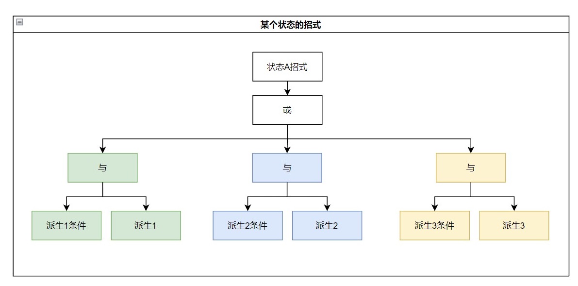 怪物处于不同状态时,其出招派生是不一样的,用行为树来描述的话大概如下图: