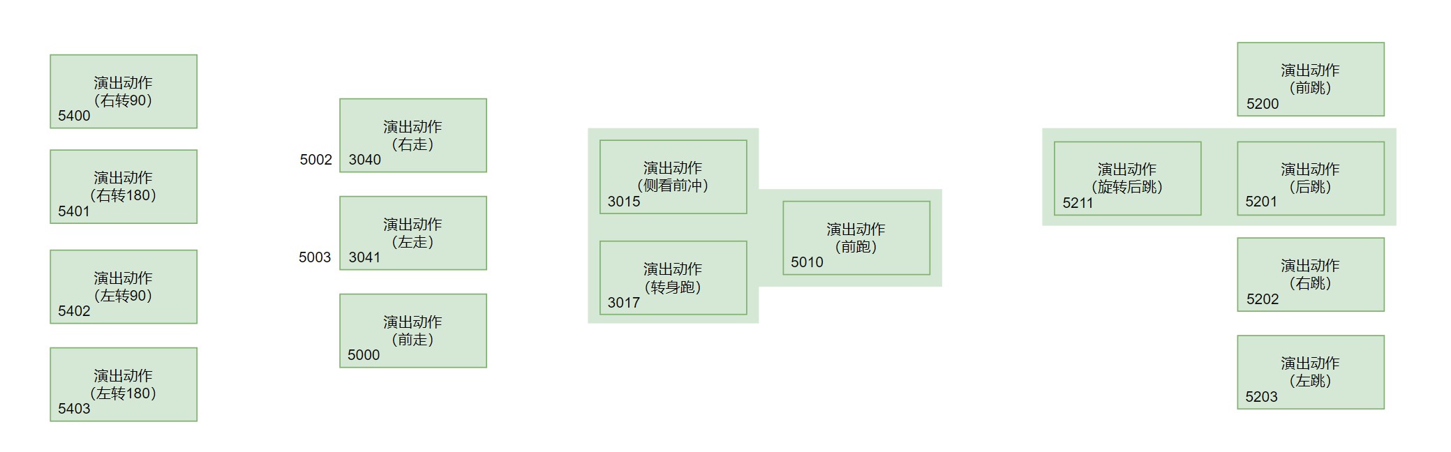 - 绿色表示非攻击动作的基础动作——这里管叫做“演出”动作,