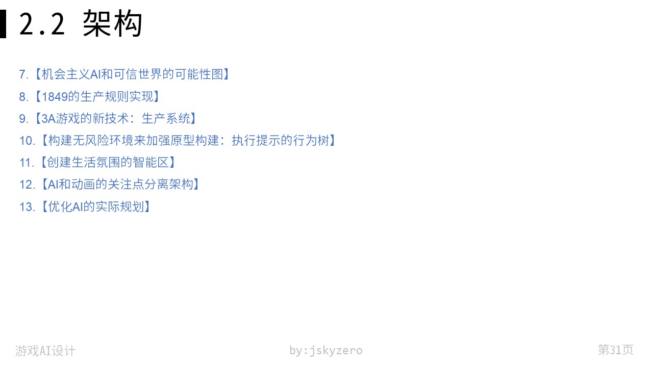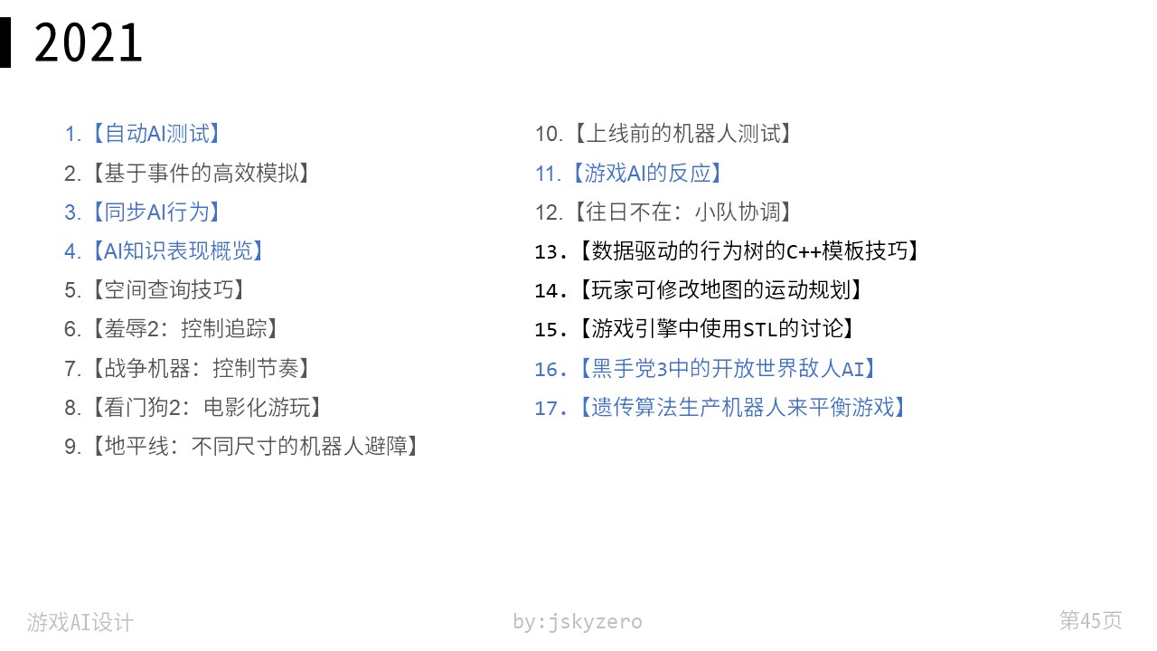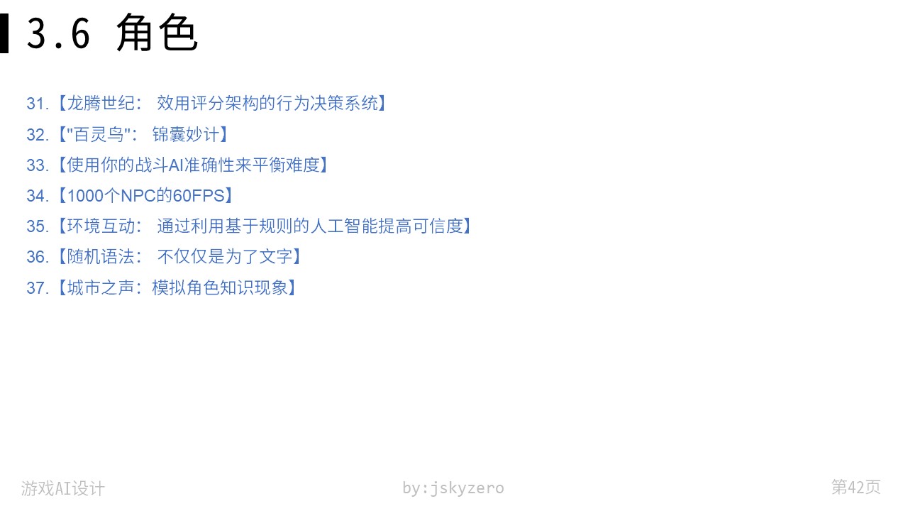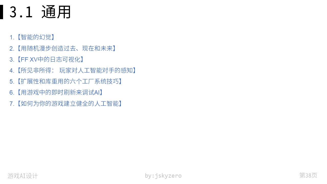 此外,强烈推荐访问GameAIPro中文索引,来快速找到GameAIPro中自己感兴趣的文章。